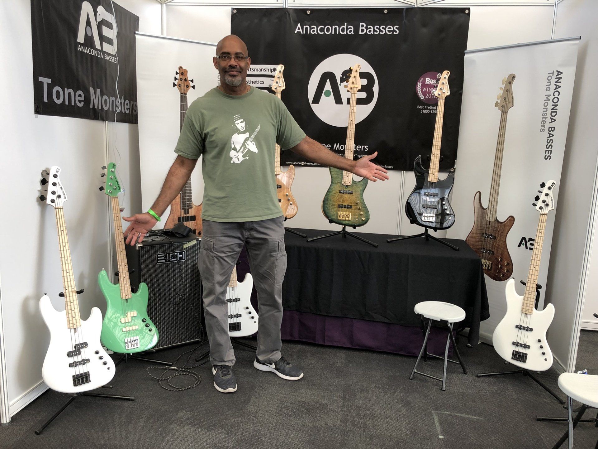Anaconda Basses exhibited at the London Bass Guitar Show at the Islington Business Design Centre and had a successful launch of the new Ultra J Essence Basses.